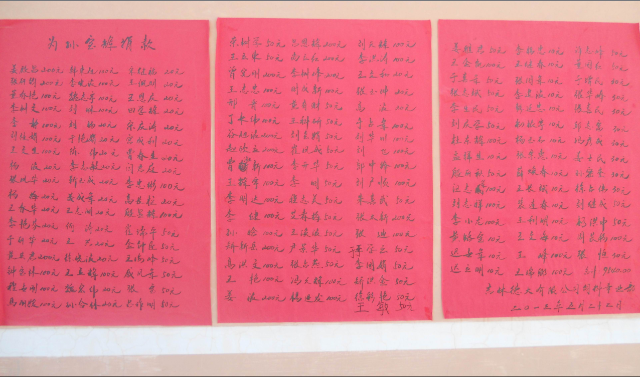 “一方有難,八方支援,奉獻愛心”是中華民族的傳統(tǒng)美德,為孫寶輝同志不錯過最佳治療期,我吉林德大有限公司飼料事業(yè)部全體同仁,在姜殿昌副總經(jīng)理的帶動下,于2013年5月22日為孫寶輝同志捐款9540元人民幣,以解其燃眉之急。點點愛心,匯集成河,無私助人,真情暖人心